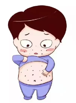 主要症状:水痘病毒感染人体后,经过大约2周的潜伏期,患者可出现头痛、全身不适、发热、食欲下降等前期症状,继而出现有特征性的红色斑疹,后变为丘疹,再发展为水疱,常伴有瘙痒,1~2天后开始干枯结痂,持续一周左右痂皮脱落。皮疹躯干部最多,头面部次之,四肢较少,手掌、足底更少。