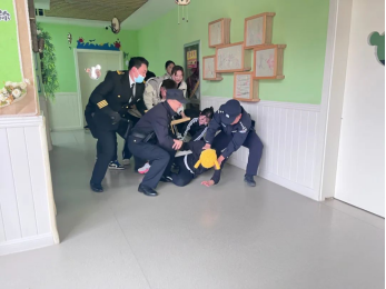 为了有效防范幼儿园内突发伤害事件,提高师幼在暴力事件发生时的应对能力,最大程度减少因突发危险事件对师幼造成的人员伤害,共筑坚实的校园安全屏障,2023年3月23日,延职附幼联合辖区枣园派出所与延安职业技术学院安全保卫处开展了反恐防暴应急演练活动。