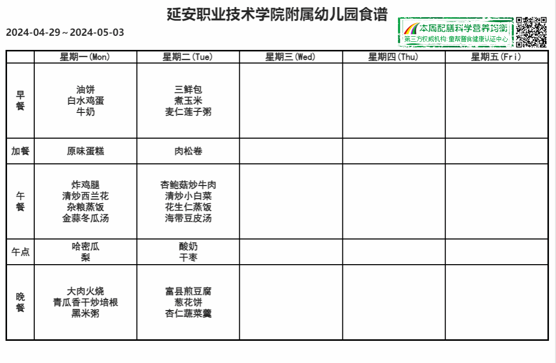 每周食谱