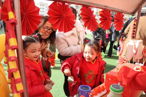 随处可见孩子们活泼的身影,现场热闹非凡,呈现一派红红火火,欢乐祥和的景象。