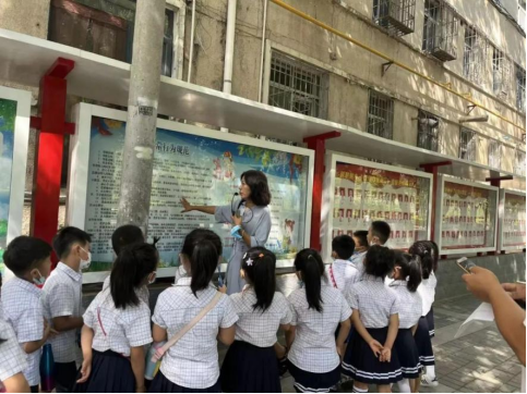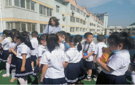 兰校长向孩子们介绍了校园文化墙后,带领孩子们参观了校园。