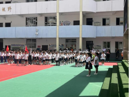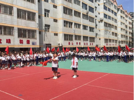 仪式感满满的周一,当然少不了升旗仪式,“全体肃立,出国旗” 一声令下,哥哥姐姐们迈着铿锵的步伐,护送国旗来到升旗台,他们英姿飒爽、神采飞扬,感染着在场的每个孩子。
