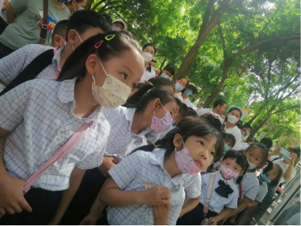 在参观小学前,孩子们早对小学这个陌生的地方充满了大大的疑惑和期望。带着疑问和好奇,孩子们与家长排着整齐的队伍,走进小学,开始了探秘小学之旅!