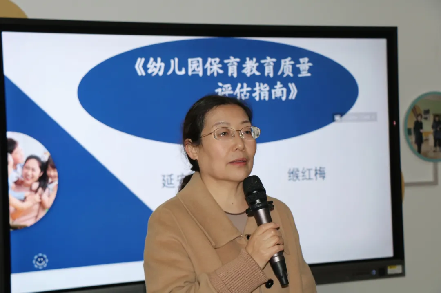 为引领全体教师深入理解并贯彻落实《幼儿园保育教育质量评估指南》(以下简称《评估指南》)思想,切实提高保教质量,2022年10月25日,延职附幼邀请延安职业技术学院副教授、学前教育专业学科带头人缑红梅老师针对《评估指南》进行专题教研。