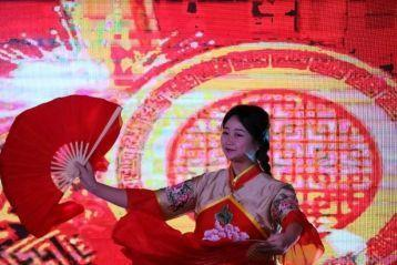 伴随着悠扬的古韵,绚丽的灯光映照着舞台,一曲欢快的《桃花红》拉开舞蹈风暴的序幕。