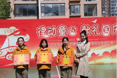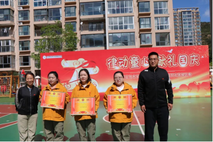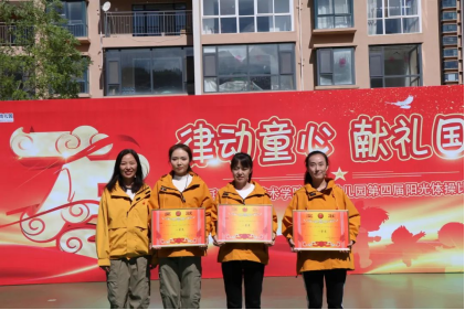 经过激烈的角逐,孩子们获得了属于他们的荣誉,评委为获奖班集体颁奖。